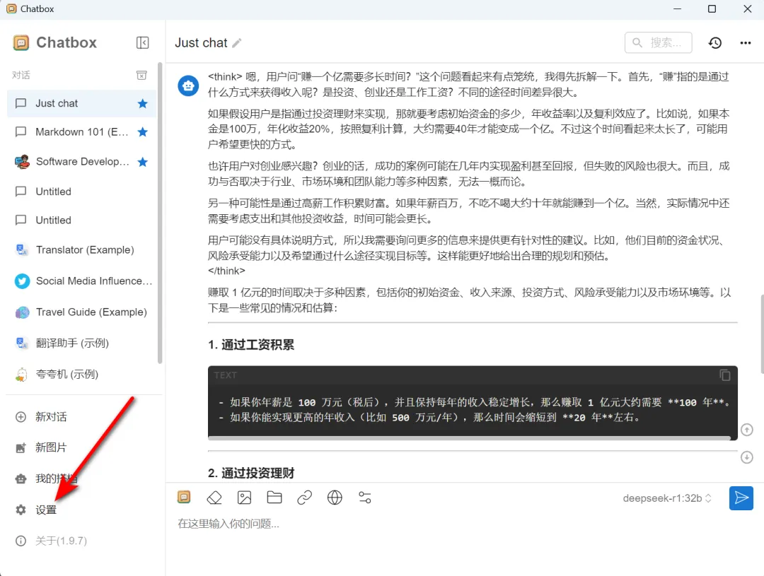 当然,你也可以通过调用API的形式,在本地客户端使用满血版R1模型。