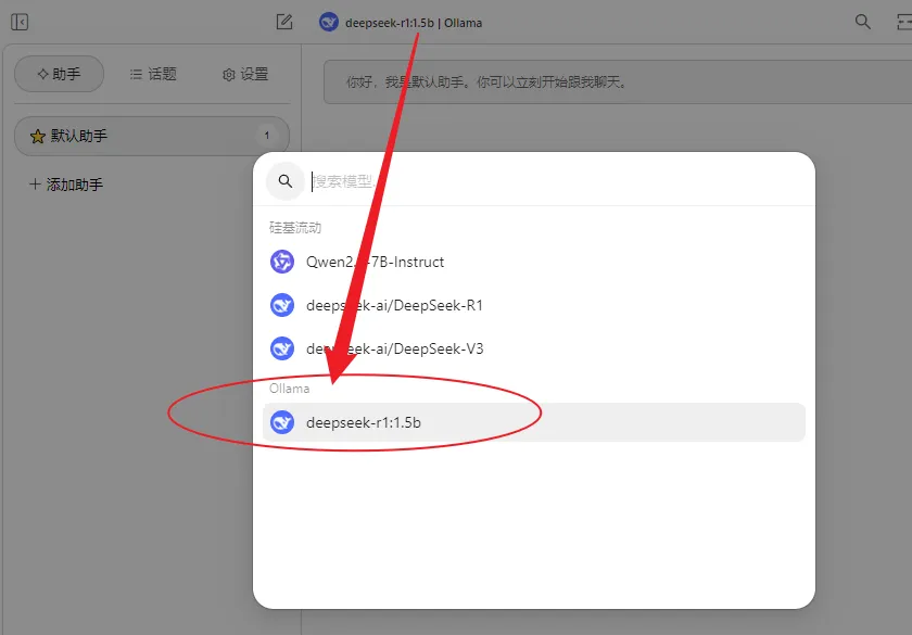 最后进入对话页面,点击顶部模型名称切换成本地部署的模型,至此大功告成。