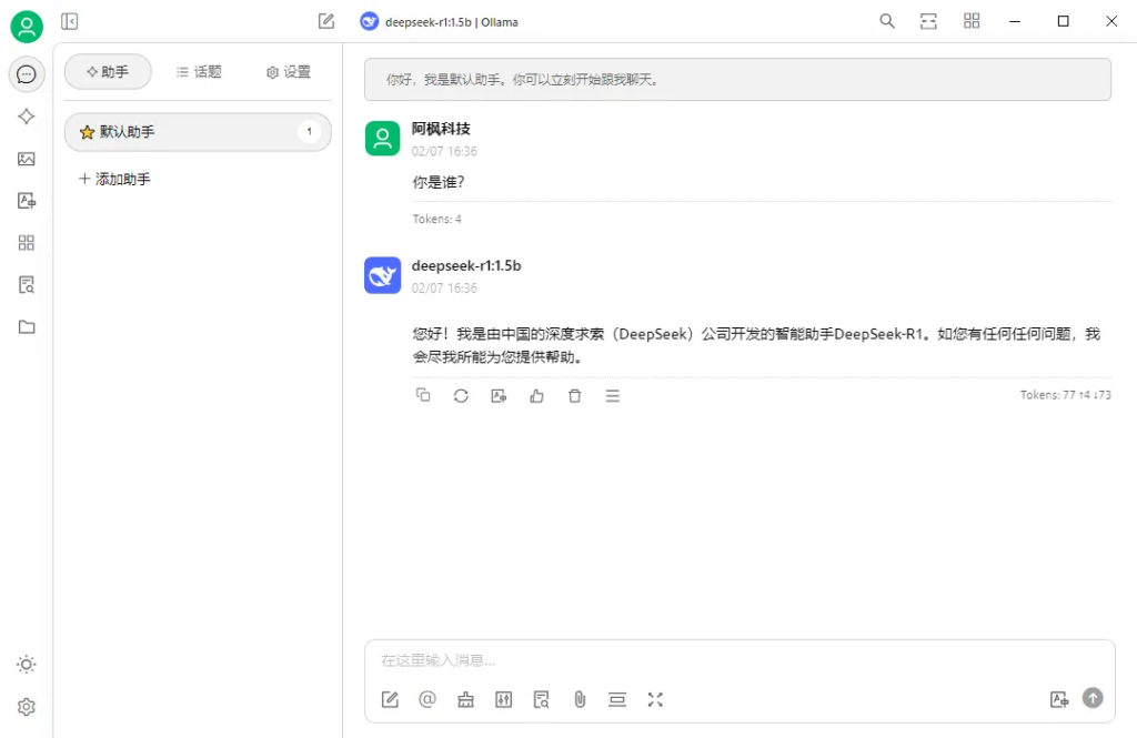 亲测可正常对话,只不过1.5b的版本有点蠢,有条件的尽量试试大参数模型,否则自己部署也只是浪费时间。
