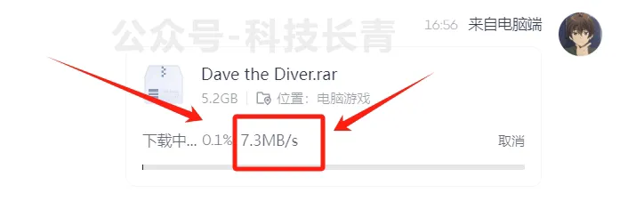 最后看一下长青测试的下载速度,7.3MB/s,下载速度还是非常不错的