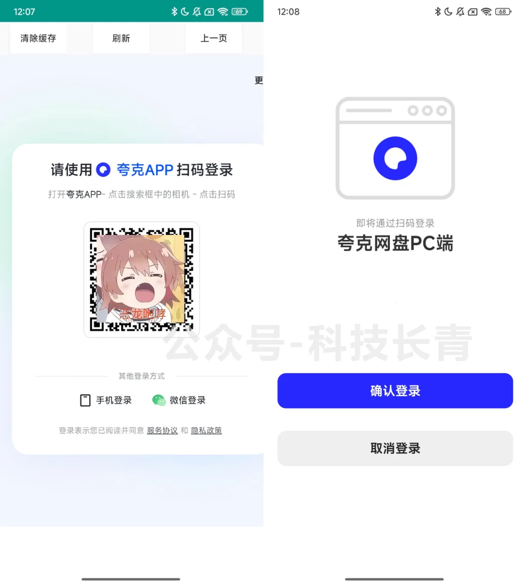 首先打开就是加速软件,截图一下登录二维码。然后来到夸克APP扫描二维码登录自己的账号。