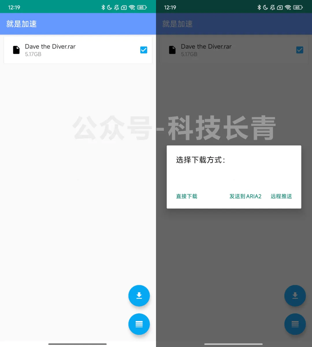 也可以选择「发送到ARIA2」。这个aria2就是长青提供的另一个app,记得提前打开放在手机后台。