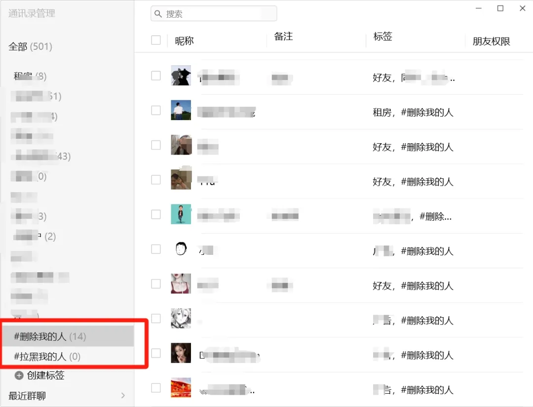 这里可以把“删除”“拉黑”的人一键添加标签。