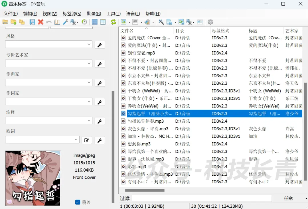 最后我们再用播放器打开这首歌看一下,歌曲的歌词和封面都已经有了。