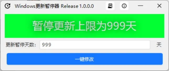 这边我们可以随便输入一个暂停更新的周期,比如:999天。