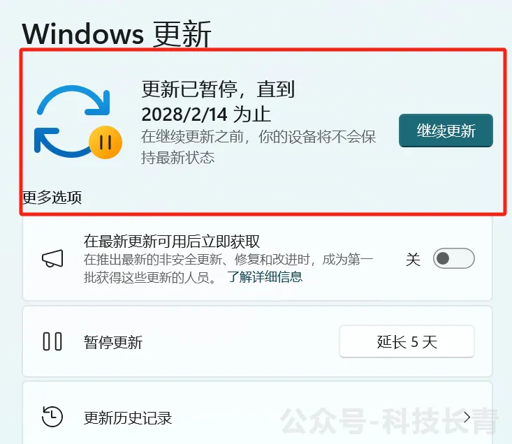 虽然说现在Window11是可以配置暂停更新的,不过能设置的停更周期非常的短。