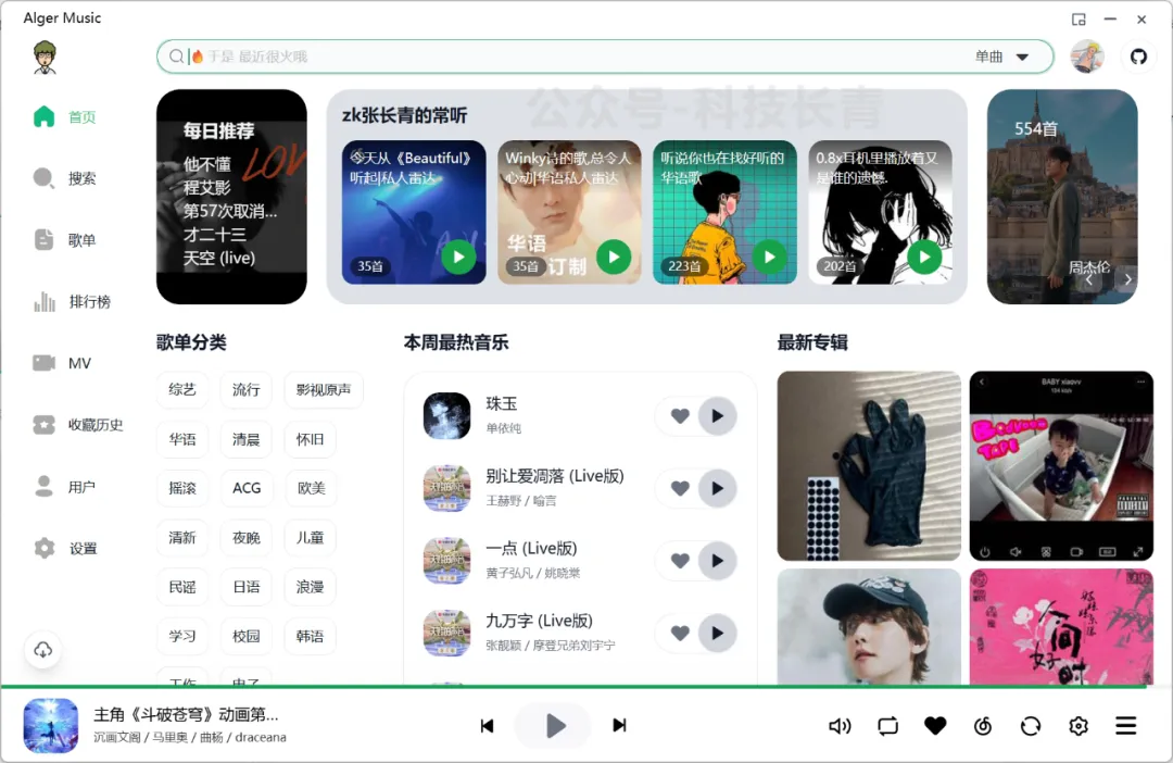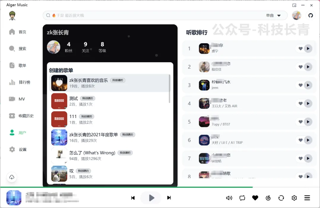 软件同步了某易云的排行榜、歌单、MV等等数据,在这个软件你不需要开通VIP就可以畅听某易的所有歌曲。