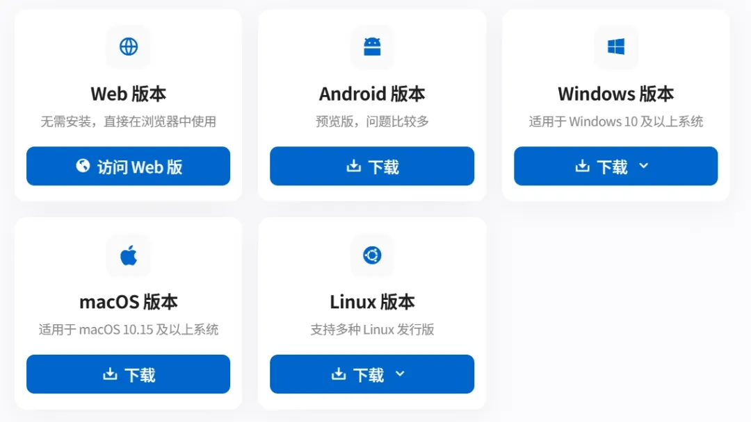同时软件支持多端使用,web、安卓、Window、Macos、linux系统都是支持使用的。