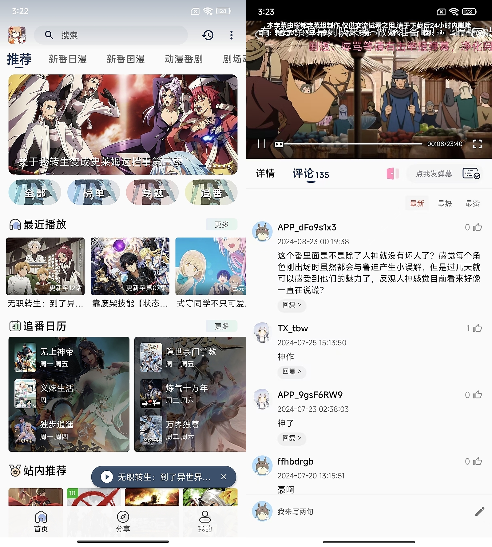 3、用户们可以在观看动漫的时候发送实时的弹幕与其他用户进行交流或者吐槽,提升看番沉浸感!