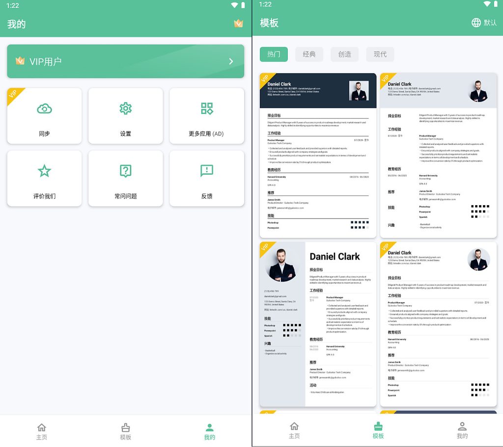 简历生成器vip版是专为用户提供的一个简历制作工具,在这里海量简历模板可以免费使用,破解版解锁VIP功能,所有简历模板无限下载,而且完全无水印、去广告,有需要的话快来下载吧!