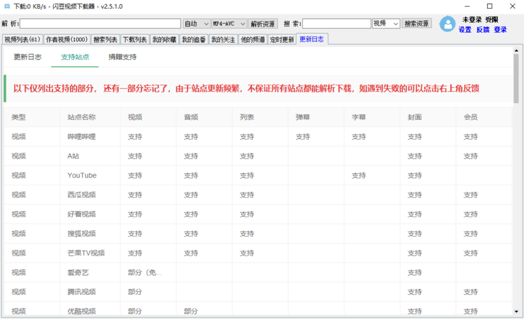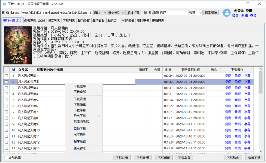 闪豆视频下载器是一款强大的视频下载工具,支持多视频站平台解析,支持下载B站、A站、抖音、爱优腾批量下载、转码自动合并,登录网站账号,解析下载会员视频,例如B站还能同步账号信息,一键批量下载关注的视频、收藏列表、番剧等。