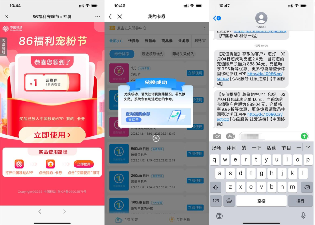 微信打开地址->直接抽1~5元话费或500MB/4GB流量包等